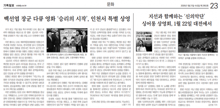 [기사] 지선과 함께하는 ‘신의악단’ 싱어롱 상영회, 1월 22일 대전에서(기독일보)