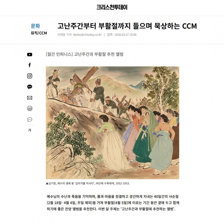 뮤직타임 [기획기사] 고난주간부터 부활절까지 들으며 묵상하는 CCM(크리스천투데이)